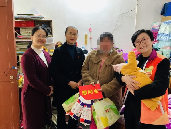 在元旦、春节即将来临之际,为做好困境妇女儿童关心关爱工作,乐昌市妇联开展“把爱带回家”2022年元旦春节困境妇女儿童慰问活动,乐昌市妇联党组书记、主席陈晓霞,乐昌市妇幼保健院汤莉副院长等一行人组成慰问组到高危产妇谢某家中开展走访慰问活动。