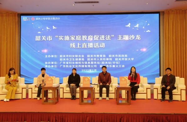 为积极宣传和贯彻落实《家庭教育促进法》,由韶关市妇联主办的2022年韶关市“实施家庭教育促进法主题沙龙”活动于1月17日上午10点在武江区举办,共收获2万多人次观看。市妇联、市教育局、市民政局、市卫健局、市人民检察院、韶关开放大学等部门负责同志参加了此次活动。