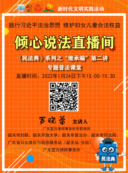 【倾心说法直播间】关于“继承”的那些事儿(第二讲)活动公告