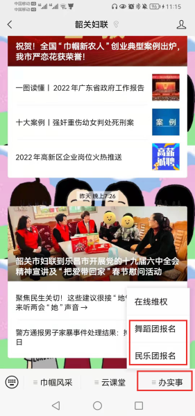 进入公众号,在菜单栏-办实事-舞蹈团报名 / 民乐团报名处即可进行扫码报名
