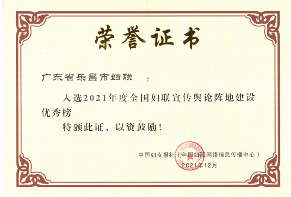 【喜报】乐昌市妇联入选“2021年度全国妇联宣传舆论阵地建设优秀榜”!