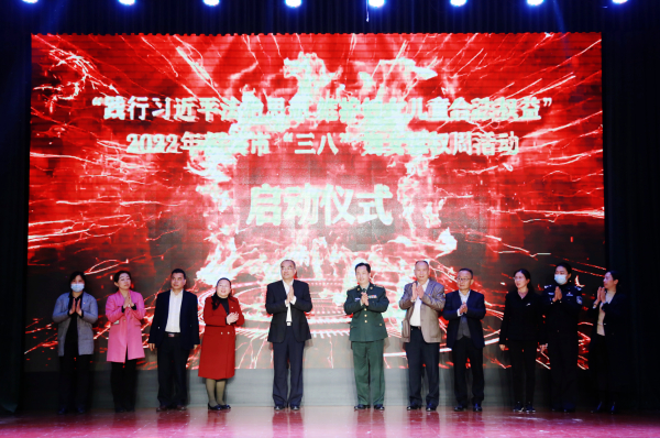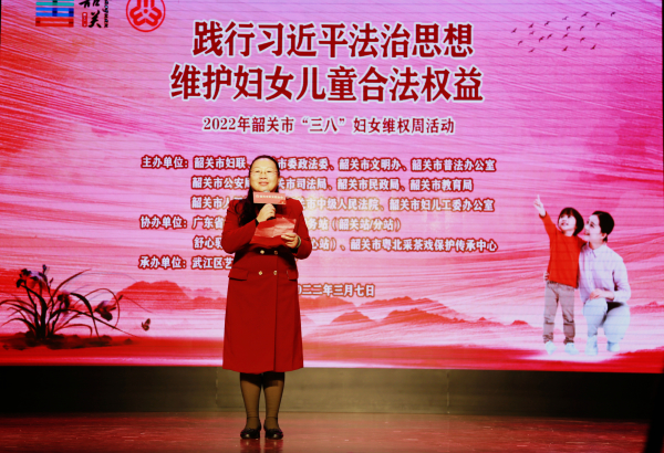大会现场为“践行习近平法治思想 维护妇女儿童合法权益”2022年韶关市“三八”妇女维权周活动,韶关市家庭教育大讲堂进村(社区)、好家风好家训进村(社区)活动暨“韶关父母学堂”,善美韶关巾帼大宣讲、乡村振兴巾帼行动、生态文明建设巾帼行动、创新创业巾帼行动、科技创新巾帼行动、健康宣传巾帼行动、巾帼志愿服务关爱行动等市妇联品牌活动行动进行了启动仪式。