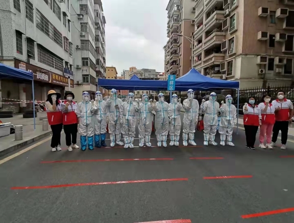 (巾帼志愿者与核酸检测工作人员一起为韶关加油)