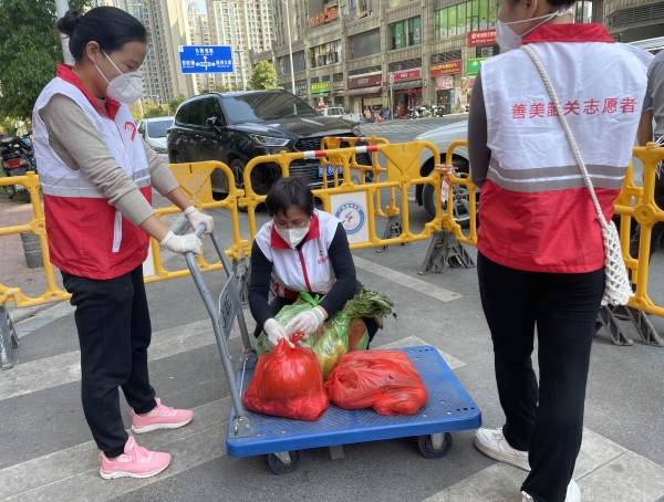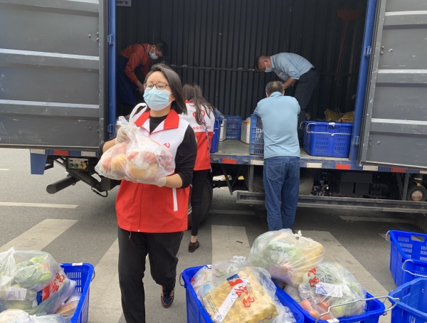 (巾帼志愿者用她们娇小的身躯为隔离居民运送生活必需品)