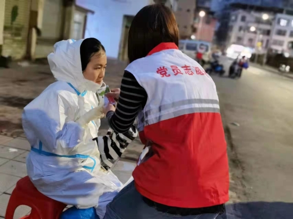 “疫情当前,我作为党员责无旁贷”,这是乳韶社区退休干部吴丽华的心声。在时间紧、任务重,没有与家人商量的情况下,她义无反顾地加入了巾帼志愿者服务队伍,在疫情前线,逐户敲门查看居民核酸检测情况,排解居家隔离群众情绪,在检测点排队区间一遍又一遍地指导居民生成核酸检测码。作为一名退休老党员,她忘了自己的年龄,忘了久站给身体带来的疲惫,饿了,就在路边坐着匆忙吃上几口,累了,就在石墩上坐一下。面对高强度的工作,她没有任何怨言,担当作为,虽然退休,但初心不改,使命依旧。