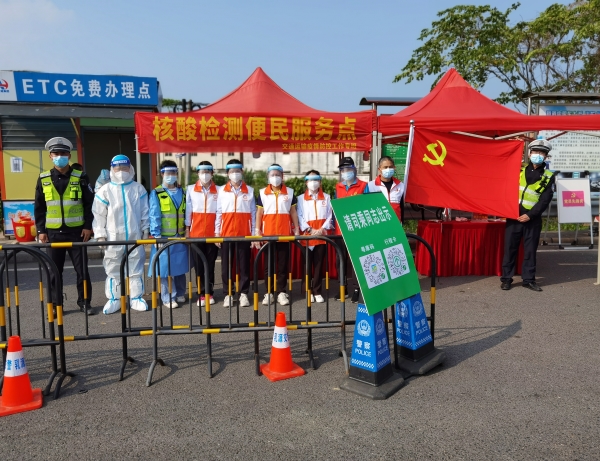 在现场,巾帼志愿者们协助做好重点人员排查工作,对司乘人员逐一进行粤康码和行程卡的查验,对于带“*”号行程卡的人员及车辆进行登记,询问其14天内去向及指引其到核酸检测点进行核酸检测。配合交警部门维护好现场车辆秩序,引导车辆有序进行检测,提高通行效率,并做好过往司乘人员解释安抚工作。