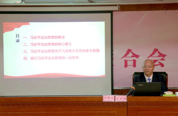 讲座上,王少敬律师从习近平法治思想的概述、习近平法治思想的核心要义、习近平法治思想关于几项重大关系的基本原理和践行习近平法治思想的一些思考等四个部分对习近平法治思想进行解读,通过风趣幽默的言语表述,讲解身边生动事例,使参加讲座人员深受启发,尤其是第四部分结合社会热点,让大家对习近平法治思想有了更加深刻的理解。讲座内容对妇联系统工作人员日常工作也具有很强的借鉴指导作用。王律师的精彩讲座获得了大家的阵阵掌声。