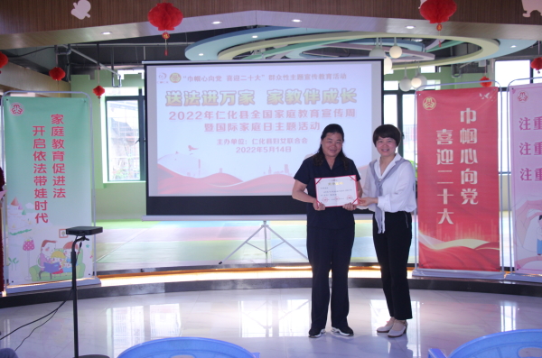 为持续深化家庭文明建设,促进家庭和睦、幸福和进步,在5月15日第29个“国际家庭日”来临之际,仁化县妇联联合新华书店邀请辖区的文明家庭、最美家庭、普通家庭等10户家庭开展以“送法进万家 家教伴成长”为主题的全国首个家庭教育宣传周暨国际家庭日主题活动。韶关市妇联副主席伍海艳出席活动并讲话,市妇联家儿部、县妇联以及县新华书店有关负责人出席活动。