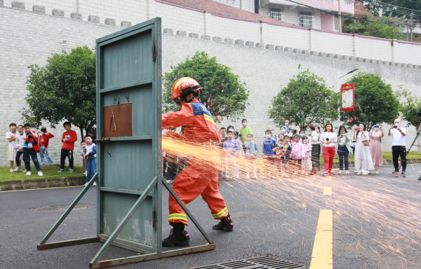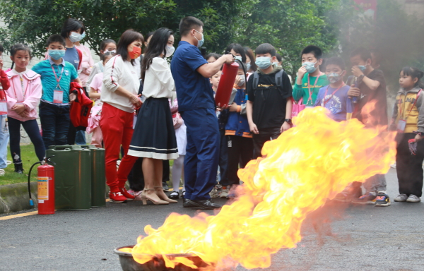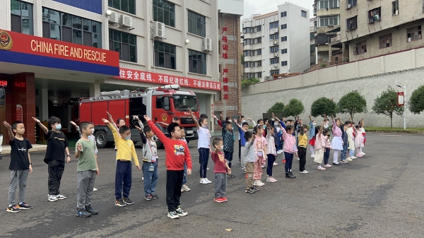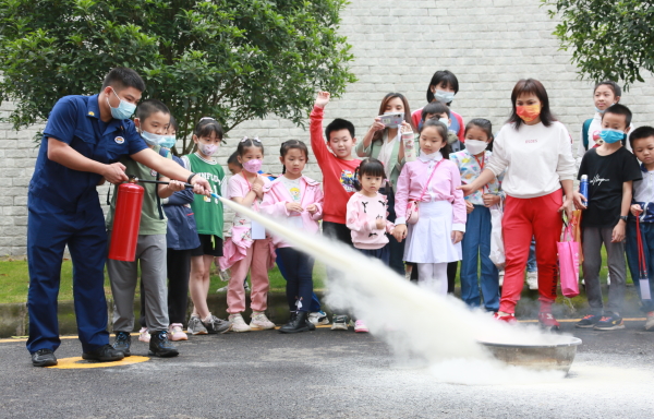 在老师的带领下,小小宣讲员们带着无比崇敬和感恩的心观看了韶关市消防救援站的成果汇报、消防车辆、器材装备展示,直观形象地了解韶关消防救援队伍的基本情况;在体验与尝试中认识日常用火、用电、用气、灭火器的使用等生活中的消防常识。