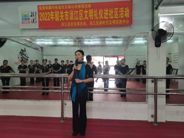 为提高全区广大妇女综合素质,优化人文环境,倡导文明言行,普及文明礼仪知识,推动社会主义核心价值体系建设,6月9日下午,由浈江区妇联、浈江区文明实践中心主办的浈江区文明礼仪进社区公益课程在矿冶社区管理中心锦园小区开课。