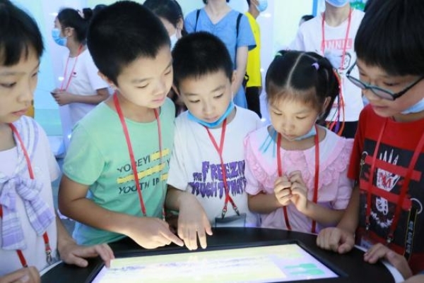 首先,小小宣讲员们参观了触摸气象、气象岭南、风雨同舟、引人入胜、探幽索胜和未来畅想六个展区的高科技展项,孩子们被声、光、电、物、景有机结合的展览深深地吸引,再现各种气象下的自然景观,互动式、沉浸式体验让孩子们身临其境,寓教于乐