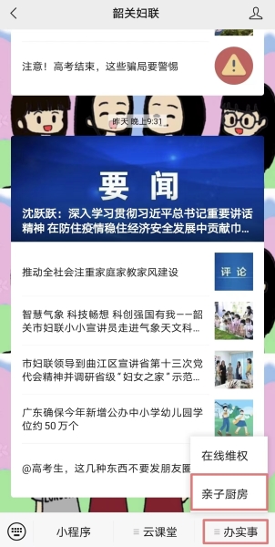 进入公众号,在菜单栏-办实事-亲子厨房处即可进行扫码报名