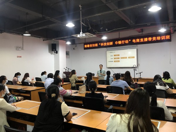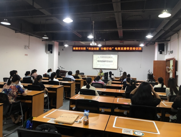 为深入开展 “科技创新巾帼行动”“创业创新巾帼行动”“百千万妇女培训计划”,帮助有创业意向的妇女群众认识电子商务,提高电商运营技能、创业能力和创业成功率,激发创业信心和决心,帮助解决妇女遇到的产品销售和创业就业难题,助力乡村振兴,6月19日,由韶关市妇联主办,广东松山职业技术学院承办,南雄市妇联协办的 “科技创新 巾帼行动——电商直播带货系列培训班”在南雄市电子商务公共服务中心举办,南雄市50余名有创业意愿和提升电商运营技能意愿的妇女参加培训。