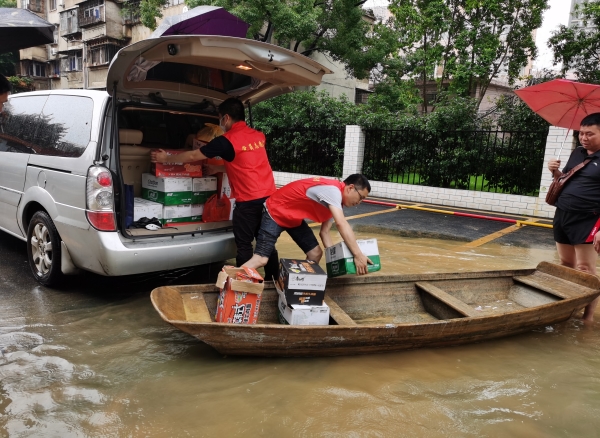 下午3点,汪波同志带领市妇联的党员干部,将紧急采购的手电筒、蜡烛、速食面、矿泉水等物资送达受灾小区现场,在向小区工作人员详细了解了小区当前汛情、住户生活等基本情况后,冒雨乘坐小木船赶往受困独居、留守老人家中,共为23户受困老人送上应急生活物资。