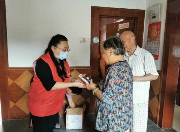 “阿姨好,我们来给您送蜡烛电筒、水和面了!”