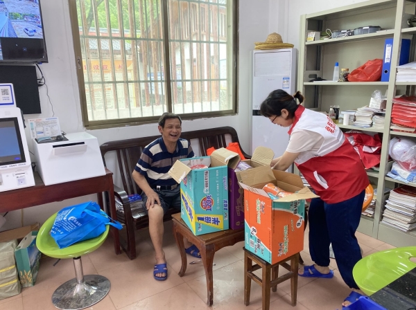 在始兴县深渡水乡冷水迳,救援现场,妇联干部们手脚麻利,迅速将生活用品、药品等打包,姐妹们小步快跑工作,协助及时将救灾物资运送到受灾群众手中。