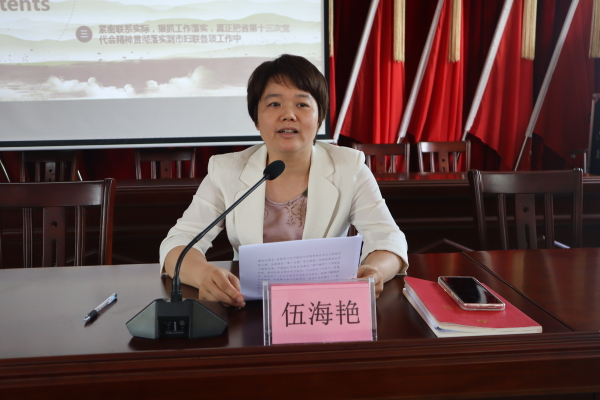 为深入学习宣传贯彻党的十九届六中全会、广东省第十三次党代会精神,按照上级妇联工作要求,切实发挥巾帼大宣讲作用,引领妇女建功立业,6月29日,市妇联党组成员、副主席伍海艳带队前往乐昌市宣讲省第十三次党代会精神。乐昌市委副书记邹有胜,乐昌市妇联和云岩镇主要领导,各镇(街道、办事处)妇联主席及妇女创业代表参加了会议。