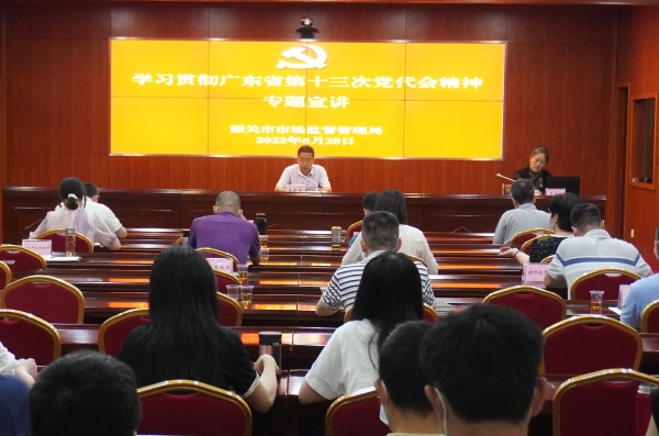省第十三次党代会召开以来,市市场监管局多形式组织全体党员干部开展系统性学习活动,认真领会大会精神要义:一是分别在6月7日、6月28日召开党组会议,传达学习省委李希书记在广东省第十三次党代会上做的报告、中共广东省委十三届一次全会会议公报和传达学习贯彻省第十三次党代会精神的市委常委会(扩大)会议精神,并对市局学习贯彻落实省第十三次党代会精神提出了5项要求。二是积极做好宣传贯彻工作,利用微信公众号全文转载省第十三次党代会报告,同时,在市市场监管局机关办公楼显示屏播放大会宣传标语,营造浓厚的学习氛围。三是召开干部大会,组织市局机关全体公务员和下属单位班子成员学习省第十三次党代会精神,并将学习省第十三次党代会精神纳入6月份基层党的组织生活内容。四是在6月28日下午,召开学习省第十三次党代会精神宣讲报告会,邀请广东松山职业技术学院马克思主义学院院长范卉敏,以《全面擘画 勇担使命 在新的赶考路上粤来粤好》为题为全局党员干部作宣讲报告,使全局党员干部更加充分地领会省第十三次党代会的重大意义和精神实质,更好地在推进市场监管工作中贯彻落实省第十三次党代会精神。