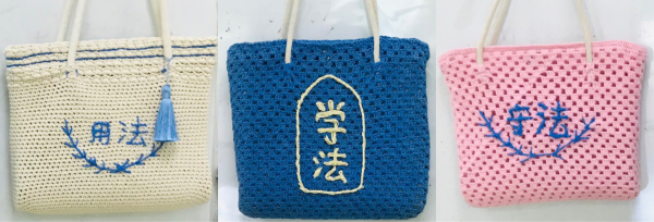 何老师寓教于乐地将法治文化融进钩编创作中,从毛线编织制作和基本针法入手,手把手教学如何穿针、怎么走线、如何收针,直至所有人都能够熟悉流程。在老师的耐心辅导下,绣着“学法”“知法”“守法”等词语的一个个栩栩如生、惟妙惟肖的法治钩编手工包就钩织完成了。