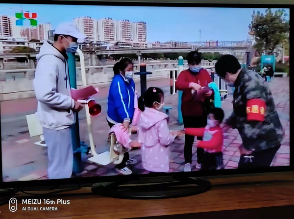 (邓术娥家庭-邓术娥(右一)和她的儿子李智(左一)在社区开展疫情防控宣传)