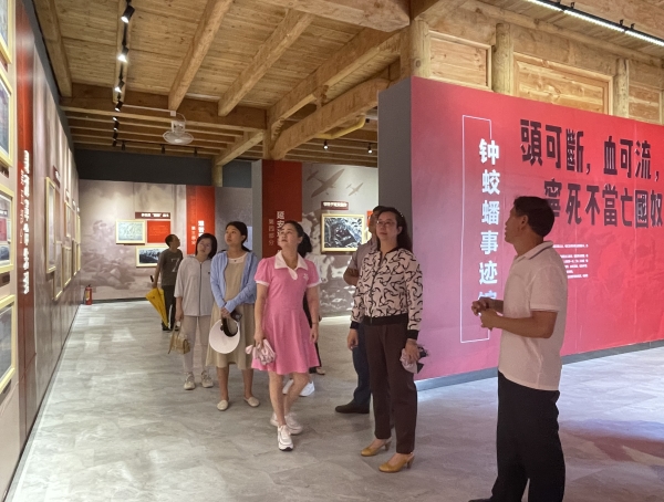 在灵潭村,彭副主席一行与村干部座谈交流,了解灵潭村的产业发展、妇女创业就业等情况,随后在村干部带领下,模拟宣讲路线,参观了灵潭村史馆、灵潭古驿站、红色英模钟蛟蟠故居等,聆听了钟蛟蟠同志的光辉事迹,认真观看了馆藏史料,详细了解了灵潭村的村容村貌及深厚的人文历史和红色旅游资源,切身感受乡村振兴给灵潭带来的巨大变化。