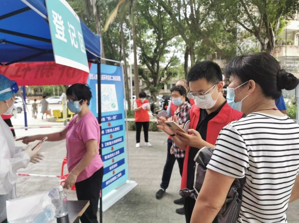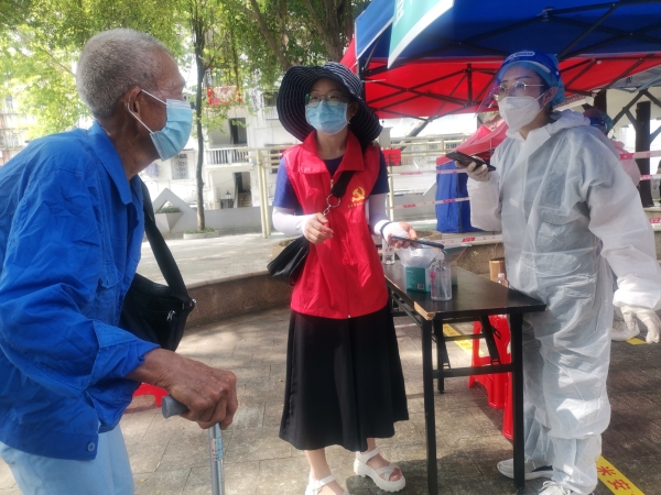 7月19日上午,武江区惠民街道侨新社区开展网格化排查核酸检测,人手短缺,急需支援。市妇联机关党支部在了解情况后,当即组织巾帼兰馨党员志愿服务队员,迅速响应支部号召,踊跃报名参加志愿活动,帮助社区解决困难。