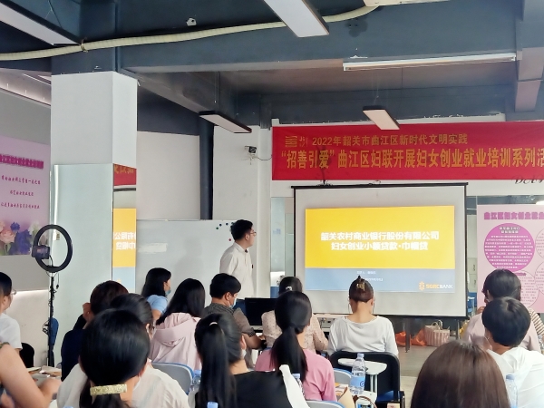 为进一步推动曲江区妇女创业小额担保贷款贴息项目工作,帮助区妇女创业就业,8月8日上午,曲江区妇联联合东莞常平曲江对口帮扶指挥部共同举办妇女创业就业培训班,此次培训班由韶关市曲江区电子商务行业协会、韶关市曲江区吉祥云妈妈爱心服务队妇女微家承办,还邀请了各镇(街)妇联主席、韶关农商行工作人员参与。本次培训班通过线上线下相结合,线下参与妇女35人,线上吸引688人次观看。