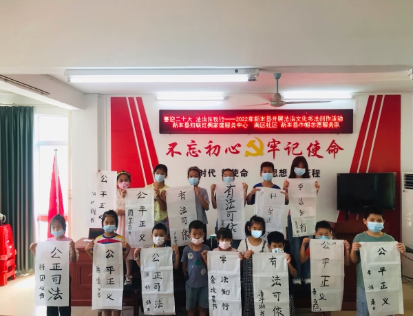 为增强妇女儿童的法治观念,深化妇女儿童法治宣传,发挥法治文化引领熏陶作用。8月12日,新丰县妇联党支部、丰城街道南区社区党委以党建共建“1+N”的形式,开展“喜迎二十大 法治伴我行”为主题的法治文化书法创作活动,吸引了妇女、儿童等书法爱好者共20多人参加。
