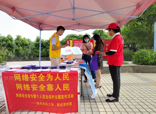 9月5日至11日是国家网络安全宣传周。为深入贯彻习近平总书记关于网络强国的重要思想,宣传落实《网络安全法》《数据安全法》等法律法规,进一步提高广大人民群众的网络安全风险识别和自我保护能力,营造全社会共同维护网络安全的良好氛围,近日,韶关市妇联联合市总工会、广东省妇女维权与信息服务站(韶关站)在育红巷社区开展了网络安全为人民 网络安全靠人民——网络安全宣传暨个人信息保护主题宣传活动。