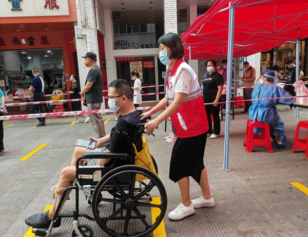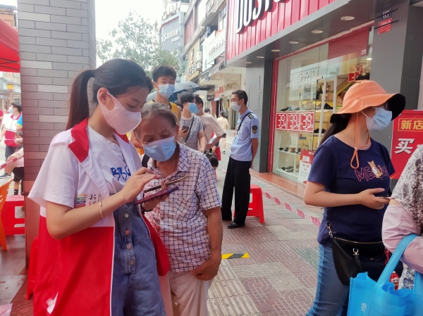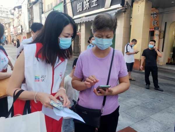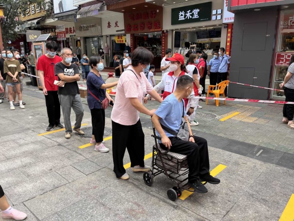 勇于担当,巾帼贡献“她力量”。一是精准入户宣传。在核酸采样开始前,社区妇联结合“我为群众办实事”工作开展“敲门行动”,利用大喇叭、张贴通知、入户宣传等方式向居民提示核酸检测时的注意事项,引导居民到辖区内就近点位进行检测。二是关爱帮扶老人。针对一些老年居民不会使用智能手机的问题,巾帼志愿者为老年人群体提供了代为申领核酸检测码登记的暖心服务。此外,在检测现场开设高效便捷的老年人绿色通道,由志愿者全程陪同,帮助辖区高龄老人做好核酸检测。三是完善现场准备。核酸检测前,街道组织在各点搭设遮阳棚,避免群众出现中暑情况,并在每场核酸检测结束后,对采样场所进行全方位的消杀。