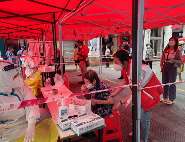 连日来,为有效应对疫情防控风险,织密织牢联防联控“防疫网”,浈江区风采街坚持党建引领,迅速开展全员核酸检测工作。全街广大巾帼志愿者积极响应号召,第一时间参与到核酸检测工作中,为保障全员核酸检测工作贡献巾帼力量。