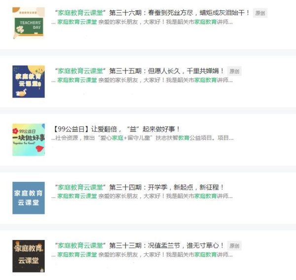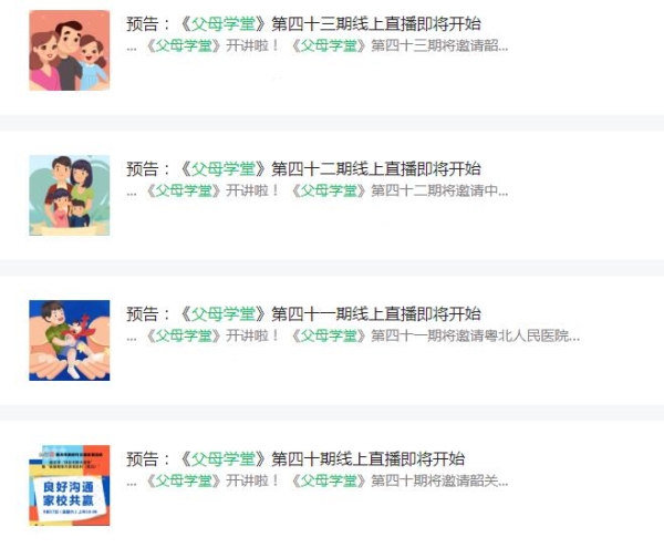 突出家庭元素,打造“韶关父母学堂”特色阵地。《中华人民共和国家庭教育促进法》于2022年1月1日起正式实施,为深入广泛宣传家庭教育促进法,履行妇联职责,提供科学的家庭教育指导,市妇联充分利用“韶关父母学堂”线上课堂,以习近平法治思想为指引,把家庭教育促进法原则、内涵贯穿于每一节课程,紧密结合国家最新法律和政策要求,向全市广大家庭提供了一个随时收听收看、参与直播讨论的家庭教育微网校,提供贴心的“家门口”式的家庭教育服务,实现受众群体零死角、广覆盖,深受家长们的欢迎,成为妇联深入贯彻落实家庭教育促进法的重要平台载体。开播以来共开设了“双减政策下,家长应该如何应对”、“爸爸去哪了?家庭教育中父亲角色的解读”等课程41期,累计观看人数42.81万人次。此外,还在“韶关妇联”微信公众号上特设“家庭教育”专栏,建设“云家教”,联合家庭教育专家精心制作了45期家庭教育音频,已推出36期。“韶关父母学堂”帮助广大家长树立了法治思维,培养科学育儿的家庭教育理念,不断提升家庭教育水平,有效促进形成了良好的家教家风氛围,助力家庭教育促进法的宣传和实施。
