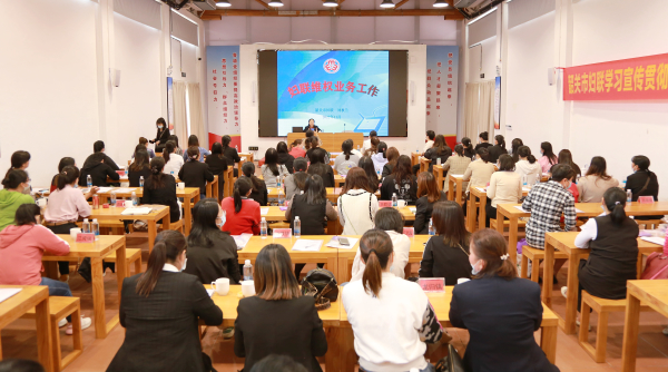 (图为武江区妇联主席黄韶娟主持召开培训班)
