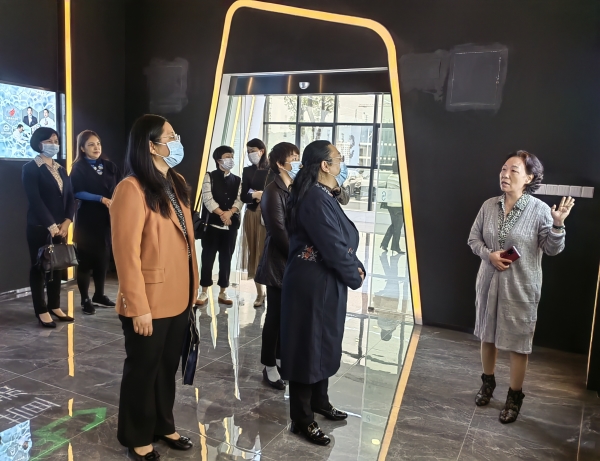 调研组一行首先参观了萱嘉医品健康科技有限公司企业产品展厅、生产车间、党建文化室,并与企业总经理刘婷婷等人员进行了座谈。座谈中,汪波详细询问了企业的发展状况,听取了企业创业发展历程和未来发展方向的介绍,对企业的生产经营、产品研发、市场营销和妇女就业等情况进行了探讨,鼓励企业要加强创新机制,积极开拓市场,为韶关高质量发展作出巾帼贡献。