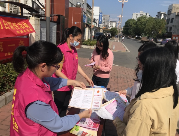 为大力宣传《中华人民共和国反家庭暴力法》、《广东省实施<中华人民共和国反家庭暴力法>办法》,切实预防和制止家庭暴力,进一步提高广大群众反家庭暴力法治意识,增强性别平等观念,助推“平安翁源”建设,在“11.25”国际反家暴日来临之际,翁源县妇联联合江尾镇江尾社区开展了“家暴零容忍 平安齐守护”反家暴主题宣传活动。