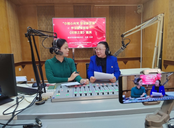 二是在11月5日上午,由市妇联、市广电台主办的韶关女性风采《妇联之窗》节目邀请了市妇联党组书记、主席汪波上线做客,讲解市妇联将如何学习贯彻党的二十大精神,在线为妇女群众答疑解惑。当天直播收听收看突破1万人次,点赞量达3000次。