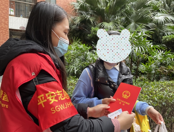 11月23日至12月10日期间,结合社区防疫宣传工作需要,韶关市妇联党组书记、主席汪波,党组成员、副主席伍海艳、彭跃勤和党组成员、挂职副主席颜燕率领市妇联党员干部职工志愿者、广东省妇女维权与信息服务站工作人员下沉社区,坚持每日排班轮流安排志愿者到武江区惠民街道侨新社区,在协助开展防疫工作的同时,走街入户开展宪法宣传活动,向群众讲解“12.4”国家宪法日由来和宪法关于公民基本权利和义务,重点宣传普及宪法、民法典、妇女权益保障法、反家庭暴力法、家庭教育促进法、未成年人保护法和禁毒防艾等国家法律及相关政策法规,通过宣传引导广大妇女群众尊崇宪法、学习宪法、遵守宪法、维护宪法、运用法律武器维护自身合法权益。此次普法宣传进社区活动共100余人次志愿者参与,派发宪法、民法典、反家庭暴力法、家庭教育促进法、未成年人保护法、禁毒防艾和服务站简介等各类普法宣传资料约2000份。