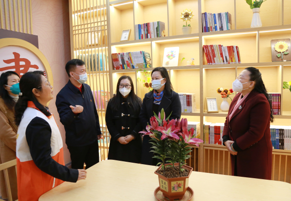 (市妇联主席汪波、参观一六服务区”巾帼向阳花“工作室)