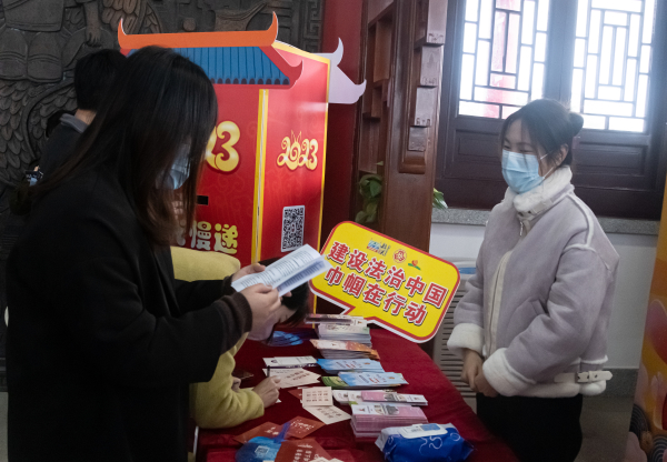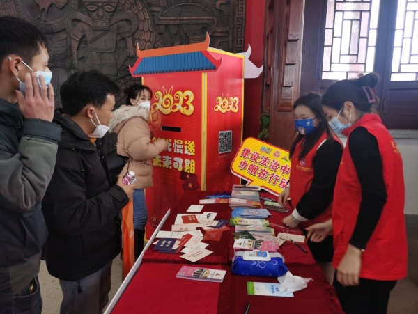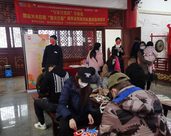 2月4日至5日,为了深入贯彻落实党的二十大精神、习近平法治思想和习近平总书记关于注重家庭、注重家教、注重家风的重要指示精神,以社会主义核心价值观为引领,将传承好家风、弘扬和谐婚姻家庭观、宣传普法知识与继承优秀传统文化、弘扬时代精神相结合,市妇联、广东省妇女维权与信息服务站(韶关站)联合市文明办、市文化广电旅游体育局、韶关市文化文物景点管理中心,组织“粤北兰馨”志愿服务队的未婚青年志愿者,并面向广大群众,在森林公园内的韶阳楼开展元宵节主题系列活动。活动内容丰富,有“时光慢递”新年许愿、“风 雅 颂”韶阳楼音乐会、“喜乐元宵”韶阳楼游园会和“今年元夜时”交友会暨“粤北兰馨”青年志愿服务队普法宣传活动,吸引了近400名群众参与,志愿者和工作人员向登高游客派发普法宣传折页、资料和宣传品共计1000余份。