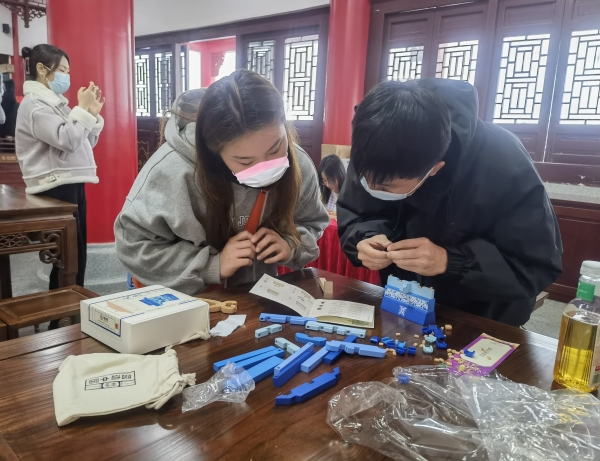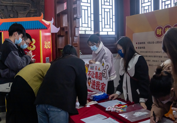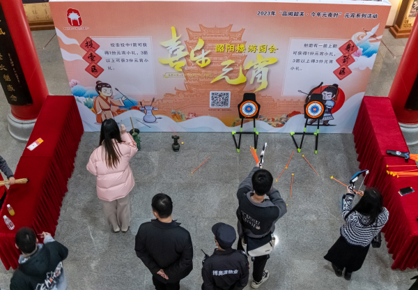 随后,青年志愿者们参观韶阳楼,感受优秀传统文化,并在主办方的组织下,开展了“时光慢递”新年许愿,在主题明信片上写下对2023年的期许投递到“时光慢递”邮筒中,而后将在2023年12月下旬收到自己的许愿明信片,给自己一个回望生活的角度,看看这一年的心愿有没有一一实现;接下来,还开展了互动趣味性强的猜灯谜、答题寻宝、投壶射箭、合奏编钟、非遗鱼灯制作、“你画我猜”等游戏环节,并将普法知识、元宵节传统文化知识和韶关本地文化等融合在各环节中,以寓教于乐的方式,让青年志愿者们从陌生到熟悉,齐心协力完成了一个又一个挑战,在欢声笑语中学到了知识,又勇敢地展示自己,表达心意。最后大家观看茶艺师表演茶道,品尝茶点,交流体会,愉快地结束了当天的活动。