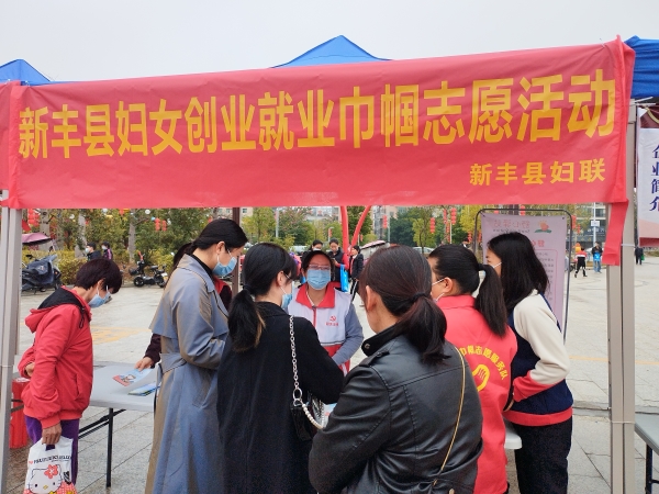 活动现场,新丰县妇联在现场设立咨询台、派发企业招聘信息、创业就业政策、妇女权益保障法、反家庭暴力法、女职工劳动保护特别规定等宣传资料400余份,向女性求职者现场宣传男女平等基本国策、家庭教育等相关知识,引导鼓励女性知晓政策、了解信息,增强妇女创业就业信心。