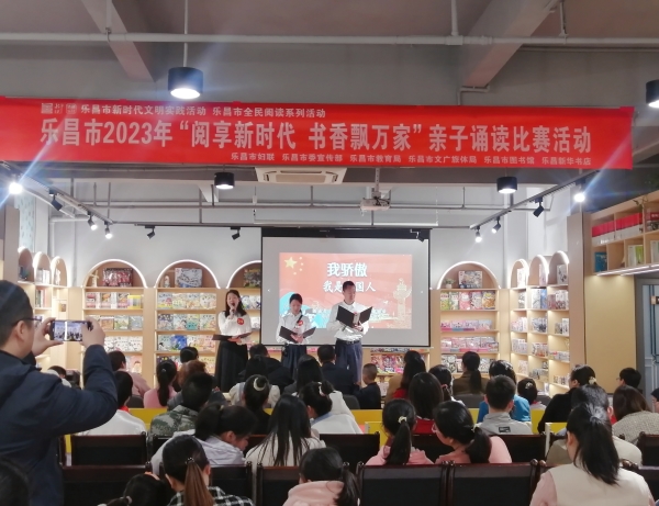 为深入学习贯彻习近平总书记关于注重家庭家教家风建设重要论述,进一步深化全民阅读活动,推动全民阅读实现高质量发展,乐昌市妇联、市委宣传部、市教育局、市文广旅体局在市新华书店联合举办乐昌市2023年“阅享新时代 书香飘万家”亲子阅读朗诵比赛,活动吸引了26组家庭70余人参加。