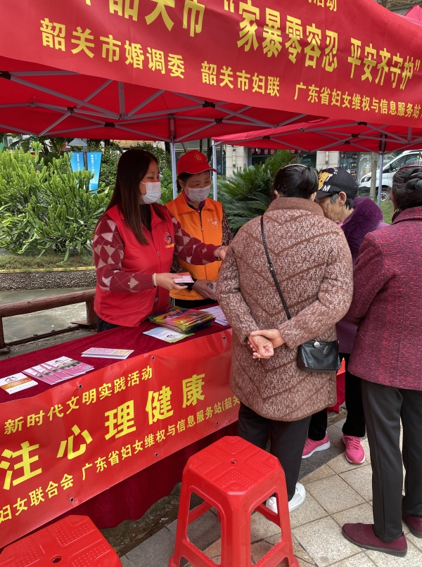 为深入贯彻落实习近平总书记关于注重家庭家教家风建设的重要论述精神,进一步增强广大群众和家庭的反家暴意识,切实维护妇女儿童合法权益,近日,韶关市妇联、广东省妇女维权与信息服务站(韶关站分站)在浈江区碧桂园凤凰城商业广场开展反家暴创平安主题户外宣传咨询活动,倡导广大群众争当表率,善待家人,尊重妇女,爱护儿童,做平安家庭的创建者,做幸福家庭的守护者。