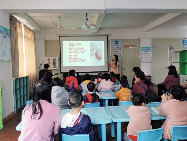 本次活动,邀请到了韶关市武江区朗诵学会冯穗元老师和李婷老师进行授课,以《满江红》为例,老师通过分析文本、提示技巧、示范朗读等方式进行授课,之后带领家长和孩子试读,从朗读中发现存在的问题,并有针对性予以纠正。在老师的耐心指导下,家长和孩子对词的基调和情感把握更到位了,朗读的表现力和感染力也大大提升了。