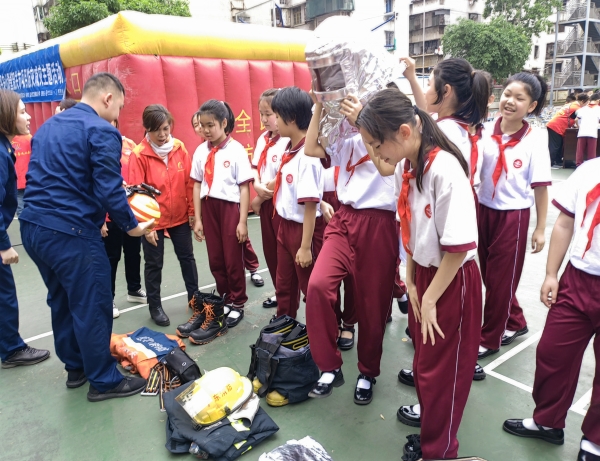 仪式结束后,学生们来到操场参加了生动有趣的游园活动,在活动中,共同学习、探索安全的重要性,共同学习防灾减灾、消防救援的小知识。通过逃生帐篷、火灾试验、灭火战斗服等消防“武器”体验,让孩子们在实践体验中学会保护自己,增强自我保护能力,让危险无处遁形。