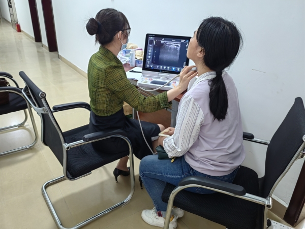 在进行讲座的同时,市妇幼保健院的B超检查医生为近60名女性干部进行了B超甲状腺筛查,并为现场的妇女群众发放了乳腺、甲状腺保健知识手册等宣传资料。通过此次讲座,不仅增强了女性干部职工自我保护意识,培养了良好的生活观念,而且为提高妇女健康水平发挥积极作用,使大家以更加健康、积极的良好心态投入到工作、生活当中,为武江区高质量发展贡献巾帼力量。