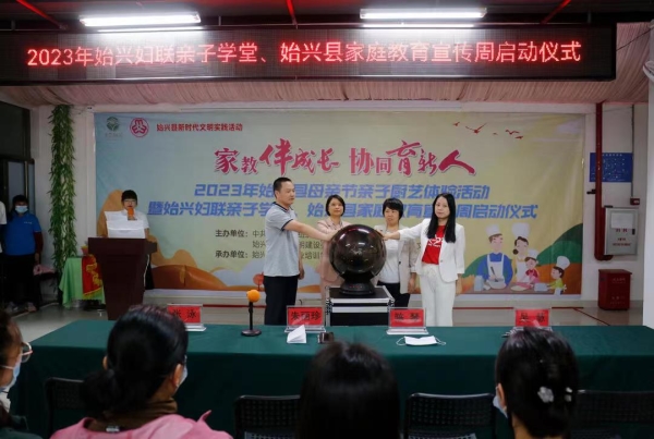 在母亲节、国际家庭日和家庭教育宣传周来临之际,5月13日上午,始兴县妇联、县委组织部、县文明办联合开展2023年始兴县母亲节亲子厨艺体验活动暨始兴妇联亲子学堂、“家教伴成长 协同育新人”始兴县家庭教育宣传周启动仪式。始兴县妇联、县委组织部、县委宣传部相关领导、各乡镇妇联主席、各单位妇委会主任和30组亲子家庭共100余人参加活动。