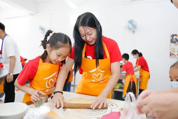 活动现场,同心接力、亲子运球两个亲子互动游戏让气氛温馨热烈,家长和孩子共同协作,在游戏中体会到合作和成功的快乐以及亲子交流的幸福。亲子厨艺体验环节中,各组家庭在面点师的指导下制作花式馒头,五彩缤纷的面团在孩子和家长们的手里变成了美丽的“玫瑰花”、可爱的“小兔子”、饱满的“玉米棒”等等。孩子们天马行空地创作自己的厨艺作品,家长在一旁鼓励、帮助,度过了温馨快乐的亲子时光。