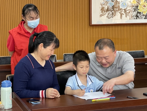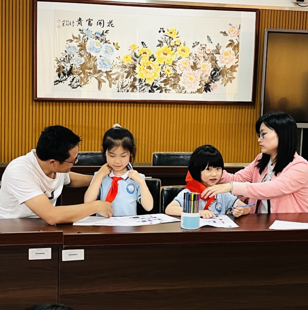 在第一节活动游戏环节中,各组家庭通过“田字格”自我介绍游戏,让参与家庭之间互相了解,分享各自参与小组的期望,在一起商量制定小组契约的过程中,也拉进了相互间的默契感与信任度;然后家庭成员在相互间有默契与信任的基础上,通过观看视频“认识红领巾”和情景设置“整理书包记”等环节让夫妻双方对即将进入小学阶段的孩子心理转变有了进一步的了解,并引导家长帮助孩子建立起对小学生活的期待,在生活中如何“由幼向小”过渡,从而促进夫妻间的教育理念一致化和有效缓解夫妻间因教育问题不同而产生的焦虑感,同时增进亲子情感,促进家庭和睦。