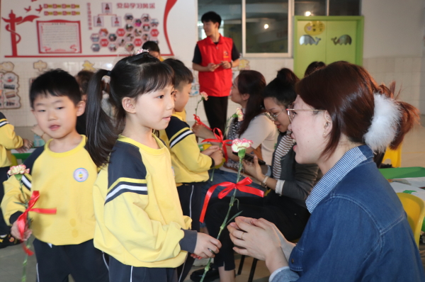 活动开组日正逢母亲节前日,服务站精心准备了美丽的鲜花,小朋友们在带组老师的带领下,真诚地说出了自己对妈妈的爱,并亲手送上了爱的花朵。听到孩子一声声的“我爱你,妈妈”“谢谢你,妈妈”,在场的家长都忍不住紧紧抱住孩子,回应这份幼小纯真但十分坚定的爱。现场气氛温馨感人,孩子与家长纷纷表示,“这个母亲节真好,太温暖了”。